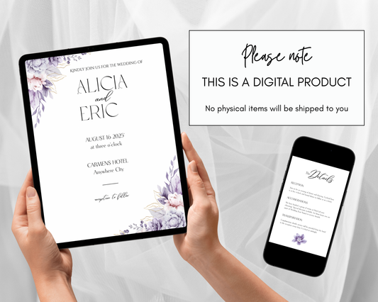 Floral Wedding Editable Invite, Details Card, RSVP Card Bundle